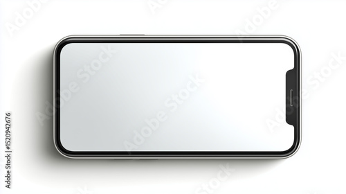 Smartphone mockup with blank screen, top view, isolated on white background.