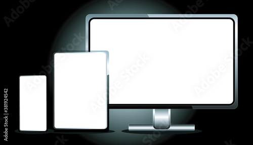 Smartphone, TV, in different angles Mockup vector Mobile Phone Collection Isolated On Black Background Common Device Mockup Vector smart phone, 3d phone