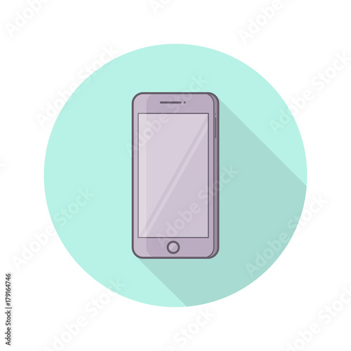 Smartphone Vector illustration with blank screen. Color round icon in flat style.