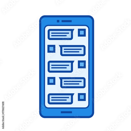 Smartphone with text messages line icon isolated on white background. Smartphone with chat line icon for infographic, website or app. Blue icon designed on a grid system.