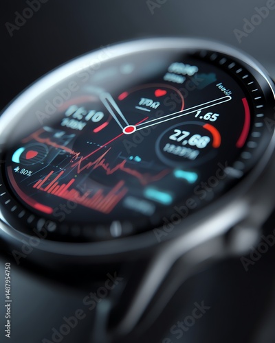 Smartwatch displays technology interface close-up