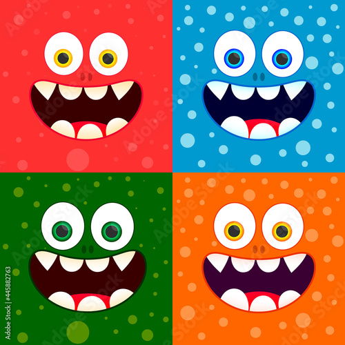 Smiley face, funny monster, banner design template, vector illustration