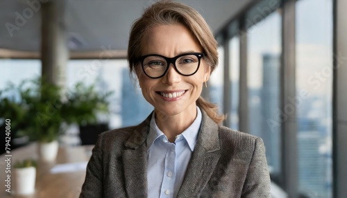 Smiling 45 years old american female banker, happy middle aged business man bank manager