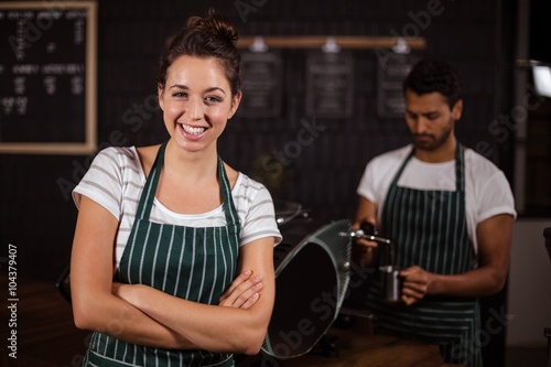 Smiling barista standing with arms crossed