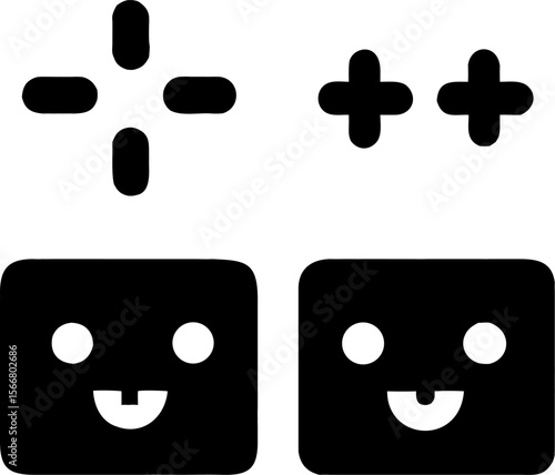 Smiling black cat and dog cartoon icons, vector animal face illustration for Halloween design