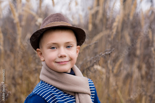 Smiling boy in a hat. Fall.