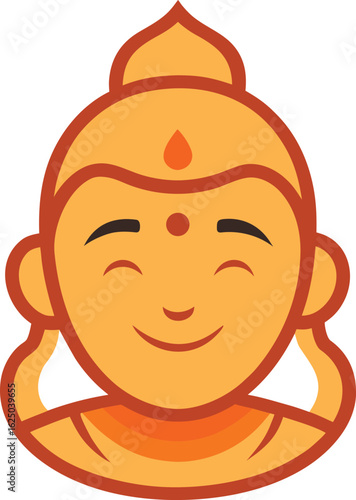 Smiling buddha icon with closed eyes and hands behind head