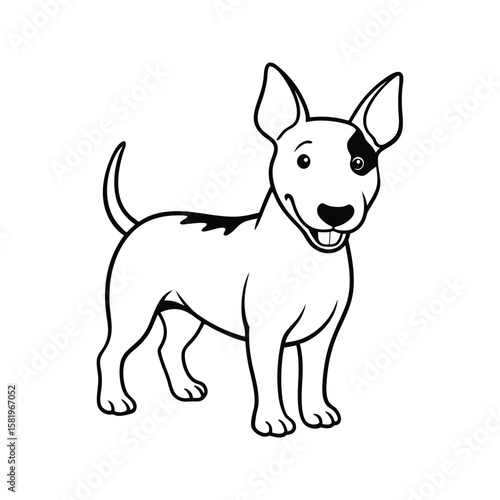 Smiling bull terrier with black eye patch and ear marking cartoon illustration