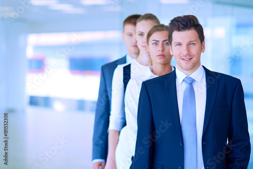 Smiling business people applauding a good presentation in the office . Smiling business people