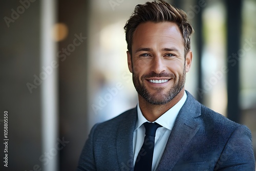 Smiling Businessman in Grey Suit and Tie - Professional Portrait