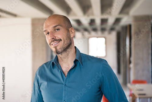 Smiling businessman standing at office