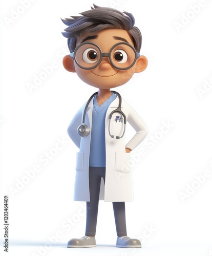 Smiling Cartoon Doctor Character with Stethoscope Standing Confidently, 3D