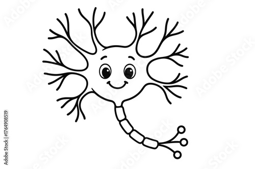 Smiling Cartoon Neuron. Neurons children?s coloring book illustration, outlined drawing, a smiling cartoon neuron with a big round cell body, branching