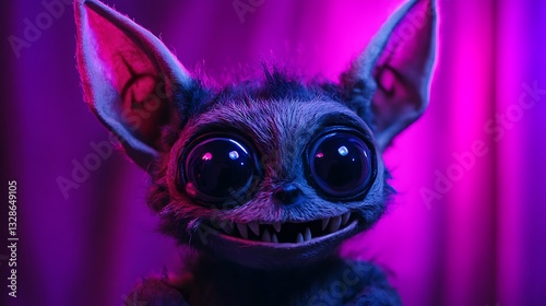 Smiling Creature Portrait with Big Eyes Against Vibrant Violet Background