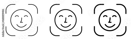 Smiling face recognition icons with happy emoji faces and scanning frames isolated on transparent background vector illustration