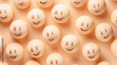Smiling Faces Pattern: 3D Rendering of Happy Emojis