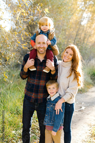 Smiling family on forest path