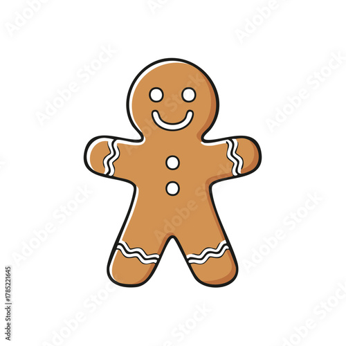 Smiling Gingerbread Man Cookie with White Icing Details