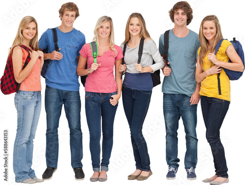 Smiling group with backpacks on as they smile