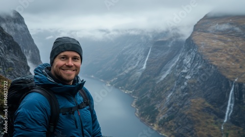 Smiling Hiker in a Fjord Landscape