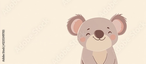 Smiling Koala Illustration, Beige Background, Cute Cartoon Animal, Copy Space