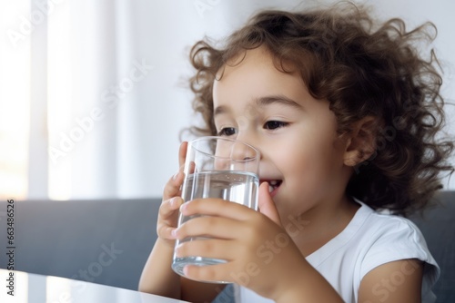 Smiling little girl having a glass of water looking away