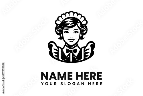 Smiling Maid Logo Design in Classic Style.