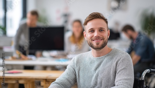 Smiling man in wheelchair in an office