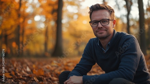Smiling Man Outdoors: Casual Autumn Portrait in the Forest.