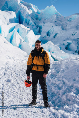 Smiling man standing at Perito Moreno Glacier in Argentina