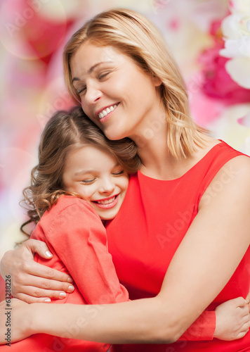 smiling mother and daughter hugging