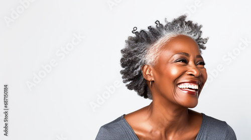 Smiling old black woman portrait on isolated background - ai generative