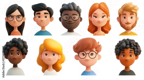 Smiling People Closeup Portrait Set Cute Cartoon Businessman Male and Female Avatars Multi-ethnic Man and Woman Faces Isolated on White Background