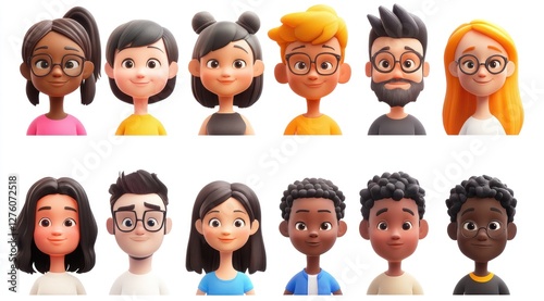 Smiling People Closeup Portrait Set Cute Cartoon Businessman Male and Female Avatars Multi-ethnic Man and Woman Faces Isolated on White Background