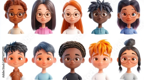 Smiling People Closeup Portrait Set Cute Cartoon Businessman Male and Female Avatars Multi-ethnic Man and Woman Faces Isolated on White Background
