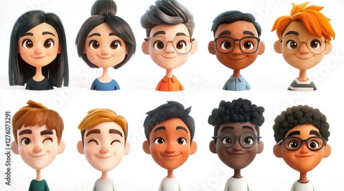 Smiling People Closeup Portrait Set Cute Cartoon Businessman Male and Female Avatars Multi-ethnic Man and Woman Faces Isolated on White Background