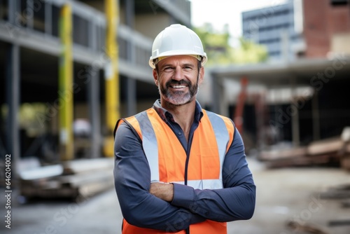 Smiling portrait of a happy male danish developer or architect working on a construction site