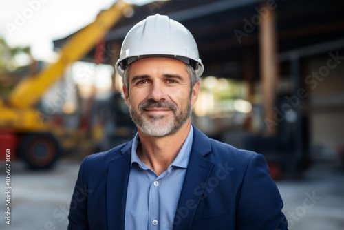 Smiling portrait of a middle aged Caucasian businessman on construction site