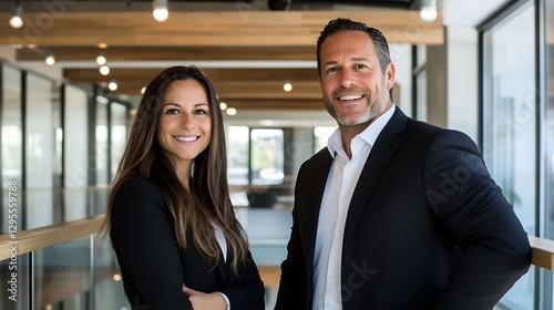Smiling Professional Business Partners Posing Together in Modern Office : Generative AI