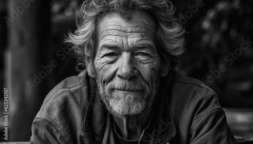 Smiling senior man with gray beard enjoys nature aging process generated by AI