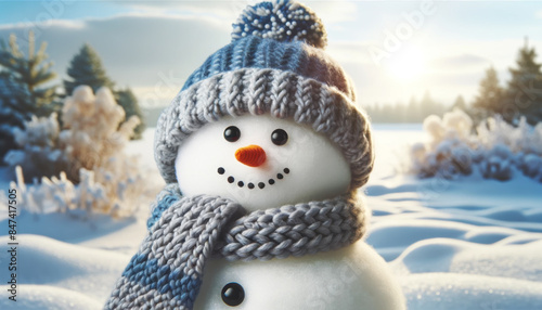 Smiling Snowman in Winter Wonderland with Copy-Space