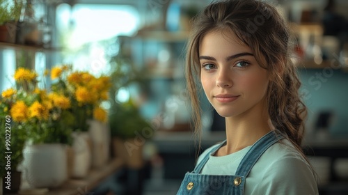Smiling Woman in a Flower Shop