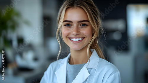 Smiling Woman in Lab Coat, Professional, Confidence, Success, Healthcare, Doctor, Dentist, Medicine, Research, Scientist, Health, Career, Positive, Motivation, Inspiration, Future, Achievement