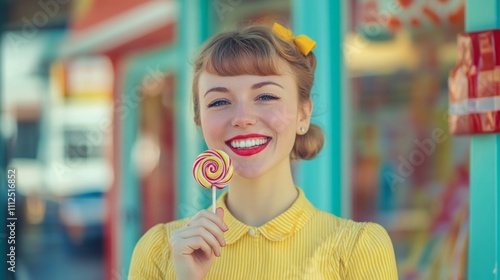 Smiling Woman with a Colorful Lollipop