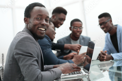 smiling young businessman sitting at office Desk