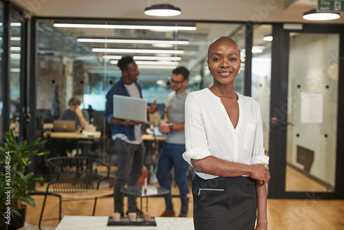 Smiling young businesswoman in office