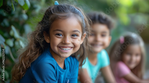 smiling young girls and boys hugging outdoors, happy childhood friendship concept, cheerful kids, joyful group portrait, best friends, close bond, outdoor happiness, carefree children
