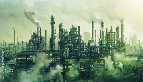 Smog-Filled Sunset Over Industrial Complex