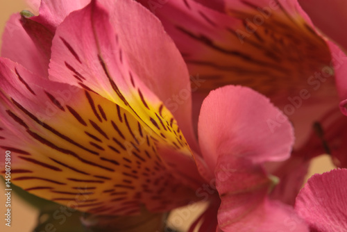 Smoke Close-up Selective soft focus pink, yellow Alstroemerieae flower petal. Macro blur natural abstract background.