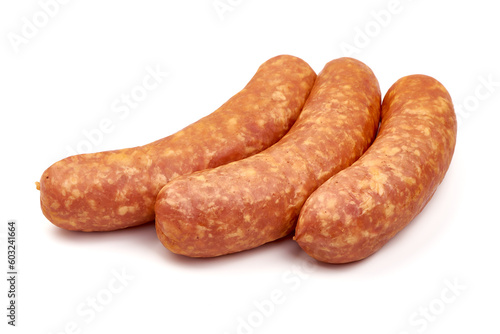 Smoked sausages for grill, isolated on white background. High resolution image.
